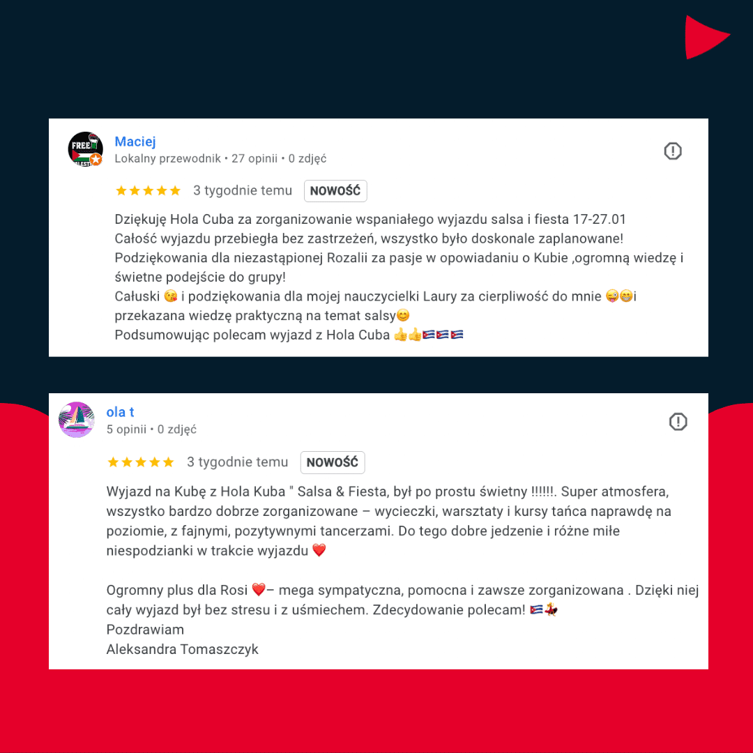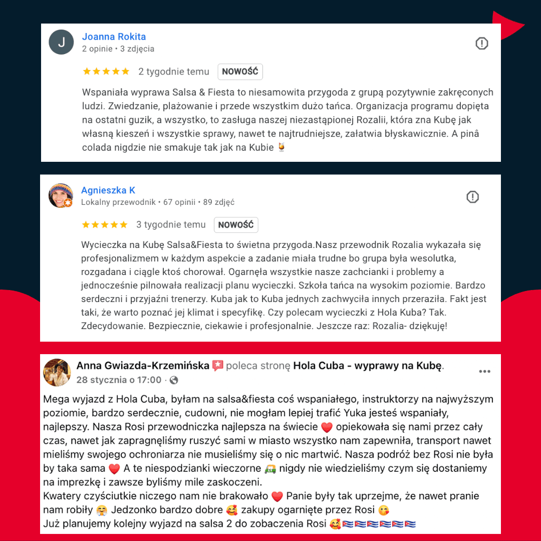 • Trzecia transza – 950 EUR płatne na Kubie po przylocie.